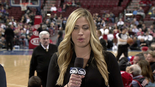 And this next one involve the Sixers because the reporter is talking about and for the Sixers. Trust me, it’s Sixers related in case you don’t watch the games. Anyway, she’s not the star of this gif. No, look to the left: